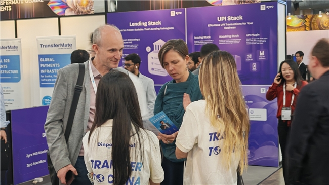 智付国际的展台上人流如织,吸引了全世界与会者的目光。本次展出的结汇产品——“TRANSFER TO CHINA”成为全场焦点。该产品面向海外持牌金融机构,聚焦跨境人民币结算时效、汇率与合规痛点,为有人民币结汇需求的海外金融机构量身定制。