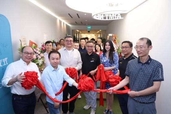 、Aimt 东南亚负责人Marina 王钰涵一起完成剪彩,标志着 Aimt 新加坡全球战略中心正式启用。